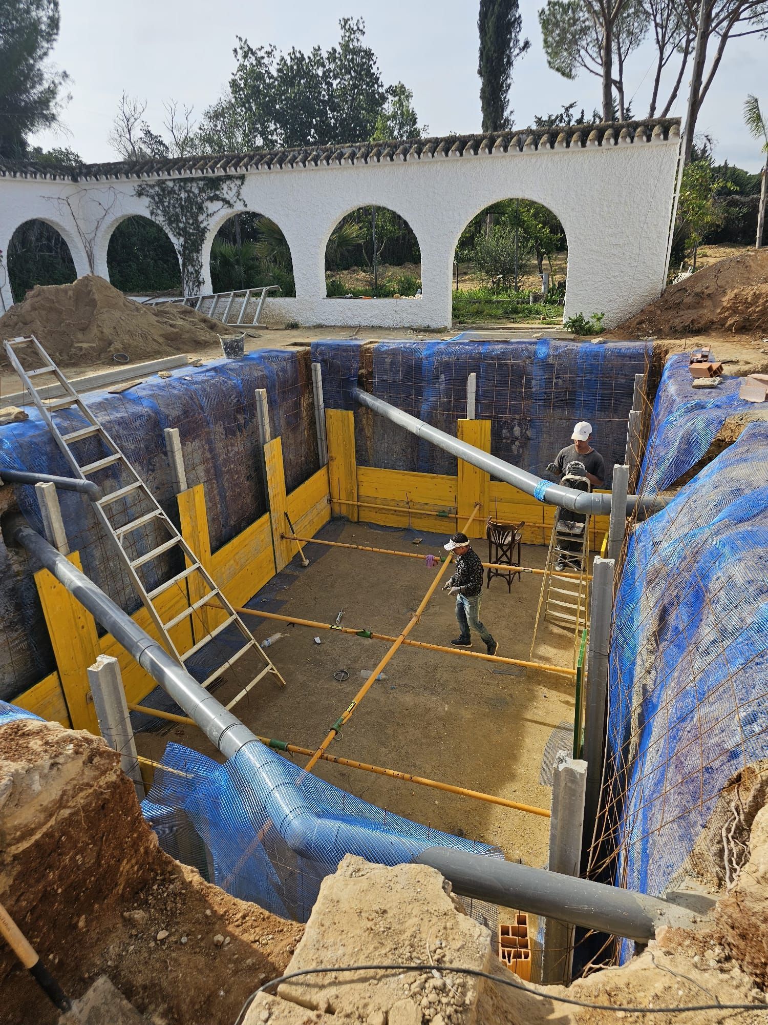 Construção de muro de contenção sem utilização de cimento em cisterna, utilizando apenas agregados calibrados e aditivos ecológicos (Jerez de la Frontera)